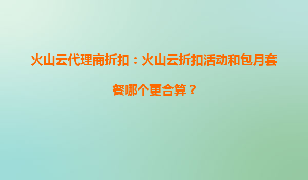 2025-09-29火山云代理商折扣:活動調(diào)整頻率與核心優(yōu)勢解析 一、火山云代理商折扣是否頻繁調(diào)整? 火山云作為字節(jié)跳動旗下的云計算服務(wù)品牌,其代理商折扣政策會根據(jù)市場策略、季節(jié)性活動和產(chǎn)品推廣階段進行動態(tài)優(yōu)化。...