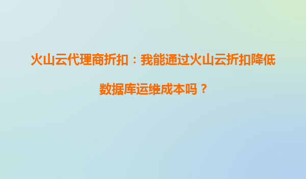 2025-09-29火山云代理商折扣:我能通過火山云折扣降低數(shù)據(jù)庫運維成本嗎? 一、火山云的核心優(yōu)勢與數(shù)據(jù)庫運維的結(jié)合 火山云作為字節(jié)跳動旗下的云計算服務(wù)品牌,憑借其彈性的資源調(diào)度、高可用架構(gòu)及全球化基礎(chǔ)...