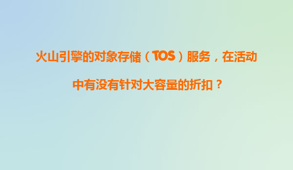 2025-11-04火山引擎TOS大容量存儲折扣解析:如何通過代理商實現(xiàn)最優(yōu)成本? 一、火山引擎TOS的核心優(yōu)勢 火山引擎對象存儲(TOS)作為字節(jié)跳動旗下的云存儲服務,提供99.9999999999%(12個9)的數(shù)據(jù)持久性,支持EB級容量擴展。...
