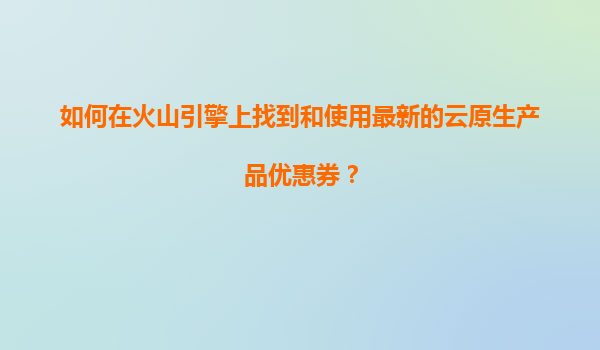 2025-11-04如何在火山引擎上找到并使用最新的云原生產(chǎn)品優(yōu)惠券? 一、火山引擎云原生產(chǎn)品概述 火山引擎是字節(jié)跳動旗下的云計算服務平臺,提供包括容器服務、Serverless、微服務治理等在...