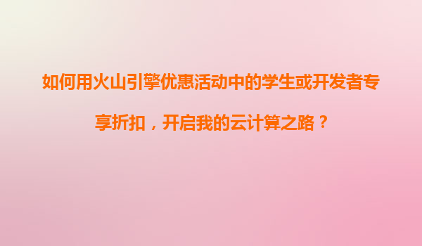2025-11-04如何用火山引擎優(yōu)惠活動中的學生或開發(fā)者專享折扣,開啟我的云計算之路? 一、火山引擎的學生與開發(fā)者專享優(yōu)惠 在數(shù)字化轉(zhuǎn)型的大潮中,云計算已成為個人學習與企業(yè)發(fā)展的核心工具。但對于預算...
