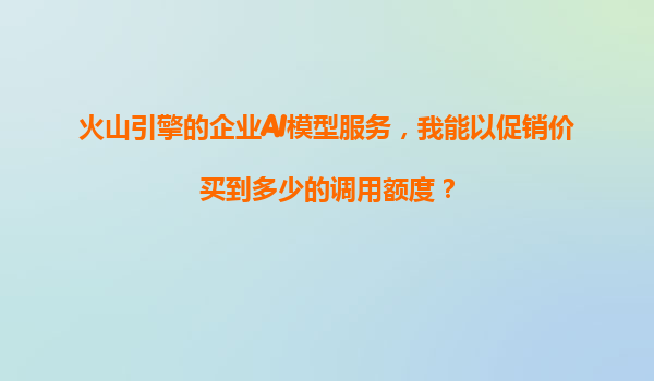 2025-11-04火山引擎企業(yè)AI模型服務促銷價調(diào)用額度詳解 一、標題解析與核心內(nèi)容 原標題"以火山引擎的企業(yè)AI模型服務,我能以促銷價買到多少的調(diào)用額度?"包含以下關鍵信息: 服務主體:字節(jié)跳動旗下...
