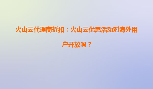 2025-09-28火山云代理商折扣:火山云優(yōu)惠活動(dòng)對(duì)海外用戶開(kāi)放嗎? 一、火山云優(yōu)勢(shì)解析 火山云作為字節(jié)跳動(dòng)旗下的云計(jì)算服務(wù)品牌,憑借技術(shù)積累和全球化資源布局,具有以下核心優(yōu)勢(shì): 高性能計(jì)算能力:依...