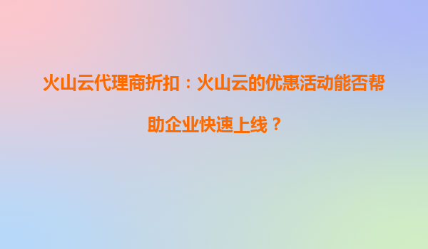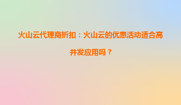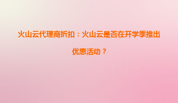 2025-09-28火山云代理商折扣:開(kāi)學(xué)季優(yōu)惠活動(dòng)來(lái)襲,助力教育行業(yè)數(shù)字化升級(jí) 一、火山云開(kāi)學(xué)季優(yōu)惠活動(dòng):限時(shí)折扣與多重福利 隨著開(kāi)學(xué)季的到來(lái),火山云為教育行業(yè)用戶及代...