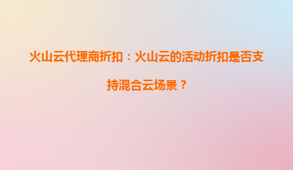 2025-09-28火山云代理商折扣:火山云活動(dòng)折扣是否支持混合云場(chǎng)景? 一、火山云混合云架構(gòu)的優(yōu)勢(shì) 混合云作為企業(yè)數(shù)字化轉(zhuǎn)型的主流選擇,結(jié)合了公有云的彈性擴(kuò)展和私有云的安全可控?;鹕皆仆ㄟ^(guò)以下優(yōu)勢(shì)滿足混合云需求: ...