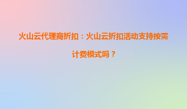 2025-09-27火山云代理商折扣:活動使用期限解析及平臺優(yōu)勢 一、火山云代理商折扣活動簡介 火山云作為領(lǐng)先的云計算服務(wù)提供商,面向代理商及企業(yè)用戶推出多項優(yōu)惠活動,旨...