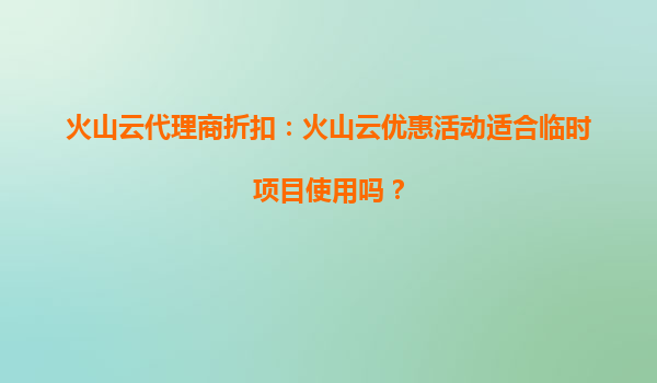 2025-09-27火山云代理商折扣:如何為臨時項目提供高性價比支持? 一、靈活的計費模式適配臨時需求 火山云的優(yōu)勢在于其靈活多樣的計費方式,特別是按量付費和短周期套餐的組合,完美匹配臨時項目的彈性需求。對于...