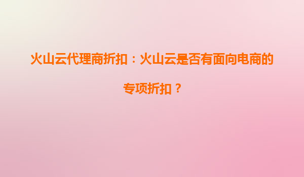 2025-09-27火山云代理商折扣:火山云是否有面向電商的專項折扣? 一、火山云簡介 火山云是字節(jié)跳動旗下的云計算服務(wù)品牌,依托字節(jié)跳動在互聯(lián)網(wǎng)領(lǐng)域的深厚技術(shù)積累和全球化資源,為企業(yè)客戶提供全...