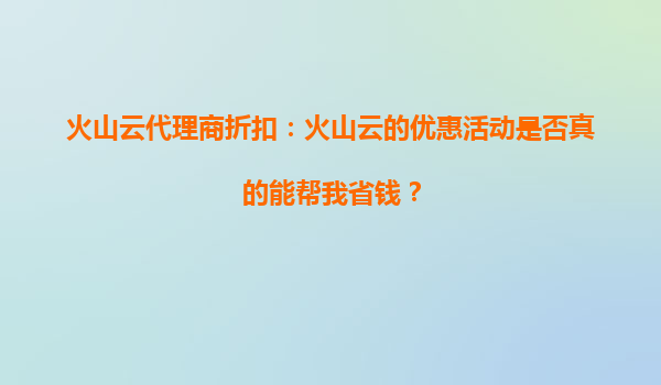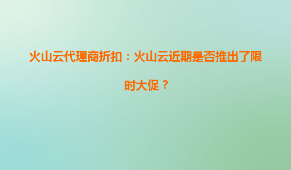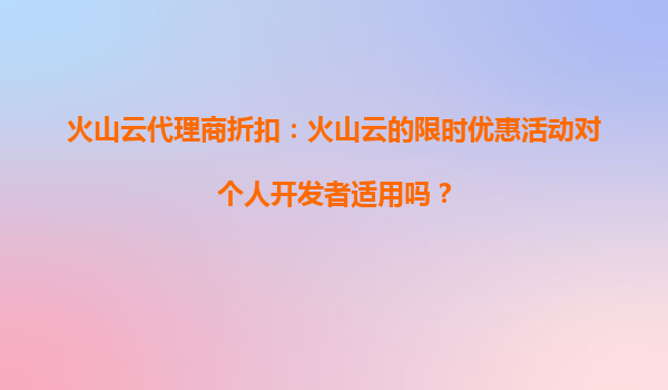 4008-020-360 火山云代理商折扣:火山云的限時(shí)優(yōu)惠活動對個(gè)人開發(fā)者適用嗎? 一、火山云限時(shí)優(yōu)惠活動概述 火山云作為國內(nèi)領(lǐng)先的云計(jì)算服務(wù)提供商,定期推出限時(shí)優(yōu)惠活動,旨在為用戶提供更具性價(jià)比的云服務(wù)資源...