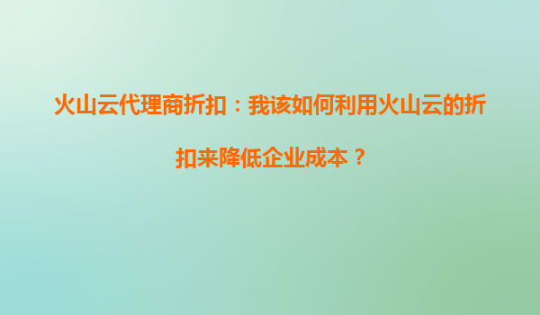 2025-09-24火山云代理商折扣:企業(yè)定制化優(yōu)惠活動的全面解析 在數(shù)字化轉(zhuǎn)型浪潮中,云計(jì)算成為企業(yè)降本增效的核心工具。作為國內(nèi)領(lǐng)先的云服務(wù)提供商,火山云憑借其高性能資源與靈活服務(wù)模式備受關(guān)注。許多企業(yè)用戶...