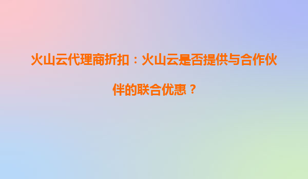 2025-09-24火山云代理商折扣政策解析:聯(lián)合優(yōu)惠助力合作伙伴共贏 在當(dāng)前企業(yè)數(shù)字化轉(zhuǎn)型浪潮下,云計(jì)算服務(wù)成為支撐業(yè)務(wù)發(fā)展的核心基礎(chǔ)設(shè)施。作為行業(yè)領(lǐng)先的云服務(wù)提供商,火山云憑借其技術(shù)實(shí)力和生態(tài)布局,為合作伙伴...