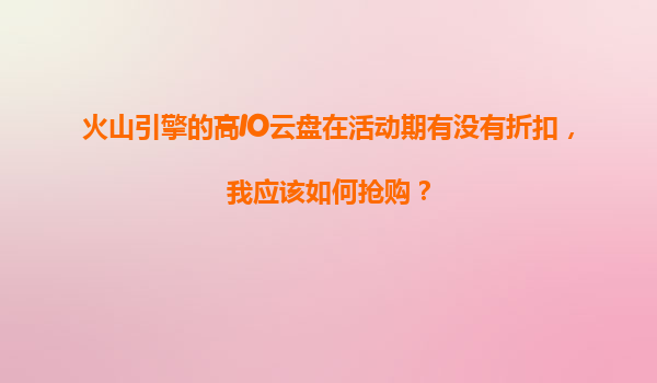 2025-11-04火山引擎高IO云盤活動(dòng)期搶購攻略及火山云生態(tài)優(yōu)勢解析 一、火山引擎高IO云盤活動(dòng)期折扣政策解讀 火山引擎作為字節(jié)跳動(dòng)旗下的云服務(wù)平臺(tái),其高IO云盤以高性能、低延遲著稱,特別適合數(shù)據(jù)...