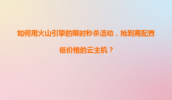 2025-11-04如何用火山引擎的限時(shí)秒殺活動(dòng),搶到高配置低價(jià)格的云主機(jī)? 一、了解火山引擎限時(shí)秒殺的規(guī)則與優(yōu)勢 火山引擎作為字節(jié)跳動(dòng)旗下的云計(jì)算服務(wù)平臺(tái),定期推出限時(shí)秒殺活動(dòng),提供高配置低價(jià)...