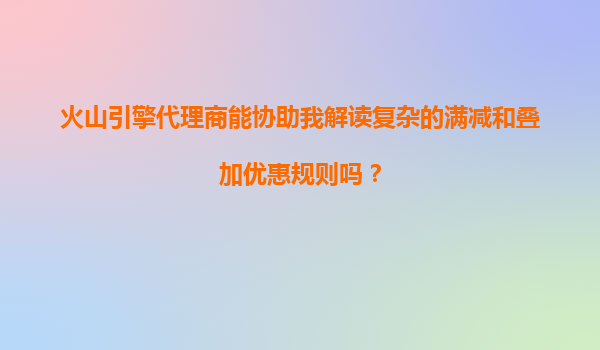 4008-020-360 火山引擎代理商如何助您輕松解讀電商滿減與疊加優(yōu)惠規(guī)則? 一、電商促銷規(guī)則的復(fù)雜性:商家的普遍痛點(diǎn) 在電商大促期間,"滿300減50""跨店滿減""優(yōu)惠券疊加"等促銷規(guī)則層出不窮,消費(fèi)者可能因...