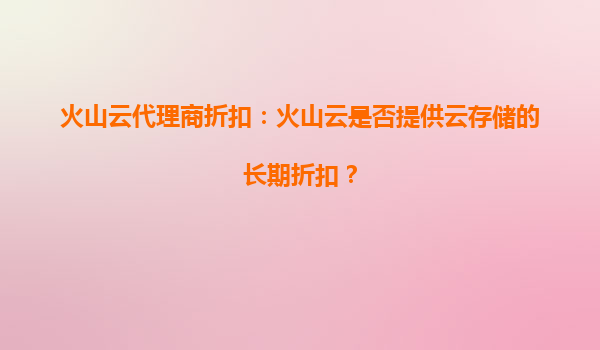 2025-09-20火山云代理商折扣:火山云是否提供云存儲的長期折扣? 在當(dāng)今數(shù)字化時代,云存儲已成為企業(yè)和個人不可或缺的基礎(chǔ)設(shè)施。無論是數(shù)據(jù)備份、文件共享還是應(yīng)用部署,云存儲都發(fā)揮著重要作用。作為國內(nèi)領(lǐng)先的云服...