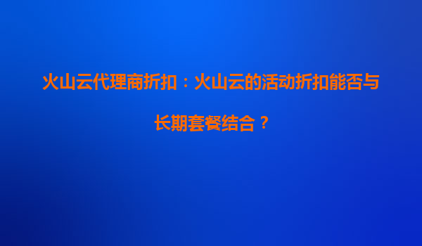 2025-09-19火山云代理商折扣:購買套餐時能否享受多重折扣? 在云計算服務(wù)日益普及的今天,選擇一家穩(wěn)定、高效且價格優(yōu)惠的云服務(wù)提供商變得尤為重要?;鹕皆谱鳛閲鴥?nèi)領(lǐng)先的云計算平臺之一,憑借其高性能的產(chǎn)品和完善的服務(wù)...