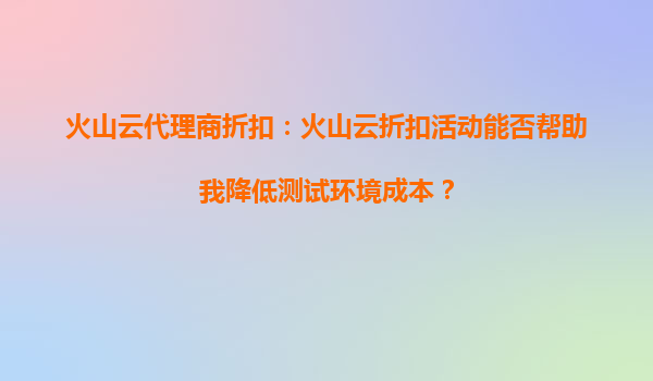 2025-09-18火山云代理商折扣:火山云折扣活動(dòng)如何助力企業(yè)降低測(cè)試環(huán)境成本? 在當(dāng)今快速發(fā)展的數(shù)字化時(shí)代,云計(jì)算已成為企業(yè)IT基礎(chǔ)設(shè)施的核心組成部分。測(cè)試環(huán)境作為軟件開(kāi)發(fā)周期中不可或缺的一環(huán),其成本控制直接影...