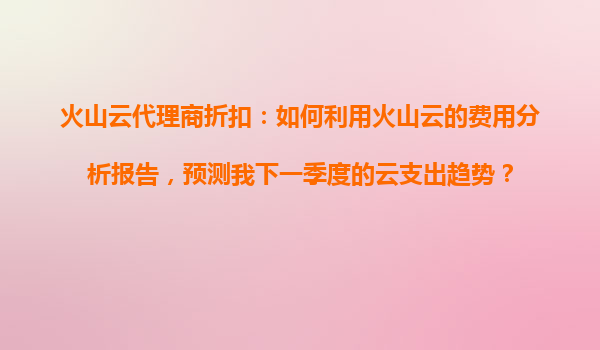 2025-11-01火山云代理商折扣:如何利用火山云的費(fèi)用分析報(bào)告預(yù)測下一季度云支出趨勢 一、火山云的競爭優(yōu)勢 作為國內(nèi)領(lǐng)先的云計(jì)算服務(wù)提供商,火山云憑借以下核心優(yōu)勢為企業(yè)客戶提供高性價(jià)比服務(wù): ...