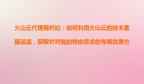 2025-11-03火山云代理商折扣:如何利用技術(shù)客服渠道獲取專屬優(yōu)惠方案 一、火山云的核心優(yōu)勢 在探討如何獲取專屬優(yōu)惠前,先了解火山云的獨(dú)特優(yōu)勢: 全球分布式基礎(chǔ)設(shè)施-覆蓋30+國家地區(qū)的100+數(shù)據(jù)中心 彈...