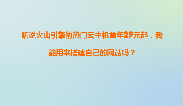 2025-11-03火山引擎云主機(jī)首年29元起,搭建個(gè)人網(wǎng)站的高性價(jià)比之選 一、火山云主機(jī):個(gè)人網(wǎng)站的低門檻入口 近期,火山引擎推出的熱門云主機(jī)促銷活動(dòng)引起廣泛關(guān)注——首年價(jià)格低至29元起,這種高性...