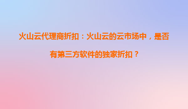2025-11-01火山云代理商折扣:火山云云市場中的第三方軟件獨(dú)家折扣解析 在當(dāng)今快速發(fā)展的云計(jì)算領(lǐng)域,企業(yè)越來越依賴云服務(wù)提供商來滿足其IT基礎(chǔ)設(shè)施的需求?;鹕皆谱鳛閲鴥?nèi)領(lǐng)先的云服務(wù)提供商之一,不僅提供穩(wěn)定、高...