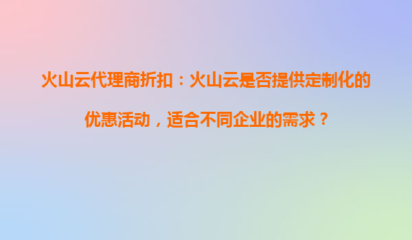 火山云代理商折扣:定制化服務助力企業(yè)數字化轉型 一、火山云服務體系:靈活高效的云解決方案 作為字節(jié)跳動旗下的云計算品牌,火山引擎(VolcanoEngine)通過火山云為企業(yè)提供全棧云服務解...