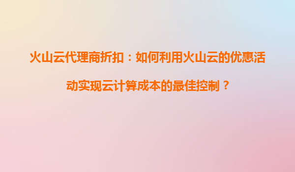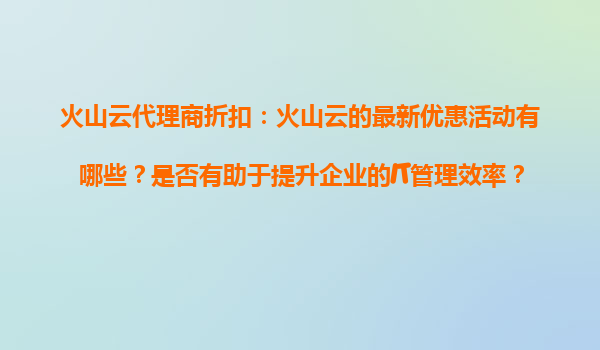 2025-09-16火山云代理商折扣:火山云的最新優(yōu)惠活動與IT管理效率提升分析 一、火山云最新優(yōu)惠活動概覽 作為領(lǐng)先的云計算服務(wù)提供商,火山云近期推出了一系列針對代理商的折扣政策與技術(shù)賦能方案,助力...