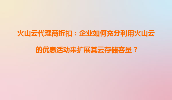 2025-09-17火山云代理商折扣:企業(yè)如何充分利用火山云的優(yōu)惠活動擴(kuò)展云存儲容量 一、火山云及其代理商的優(yōu)勢解析 隨著數(shù)字化進(jìn)程加速,企業(yè)對云存儲的需求呈爆炸式增長?;鹕皆谱鳛轭I(lǐng)先的云計算服務(wù)提...