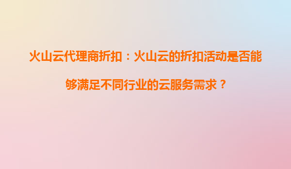 2025-09-17火山云代理商折扣:火山云的折扣活動是否能夠滿足不同行業(yè)的云服務(wù)需求? 一、火山云的核心優(yōu)勢概述 火山云作為字節(jié)跳動旗下的云計算服務(wù)品牌,憑借其強大的技術(shù)支持和生態(tài)資源積累,在彈性計算、存儲...