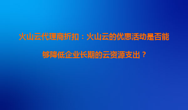 2025-09-16如何通過火山云代理商折扣優(yōu)化企業(yè)云架構(gòu)與資源配置 火山云折扣活動的核心價值 火山云通過代理商提供的折扣活動,為企業(yè)降低了上云成本的同時,保留了完整的云服務(wù)能力。企業(yè)可充分利用階...