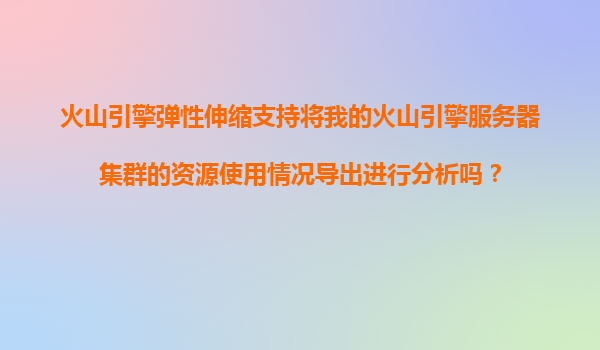 2025-11-21火山引擎彈性伸縮:如何高效導(dǎo)出與分析服務(wù)器集群資源使用數(shù)據(jù) 一、火山引擎彈性伸縮的核心能力 火山引擎作為字節(jié)跳動旗下的云服務(wù)平臺,其彈性伸縮(AutoScaling)服務(wù)通過智能化的資源調(diào)度...