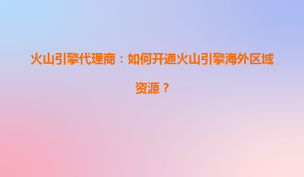火山引擎代理商:如何開(kāi)通火山引擎海外區(qū)域資源?