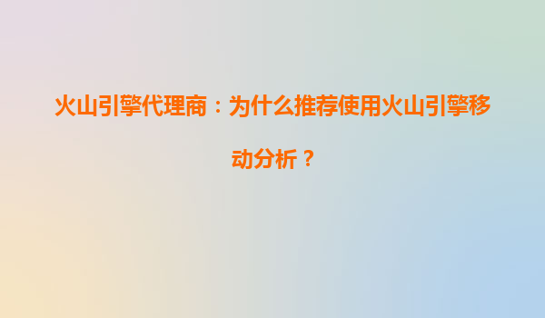 火山引擎代理商:為什么推薦使用火山引擎移動(dòng)分析?