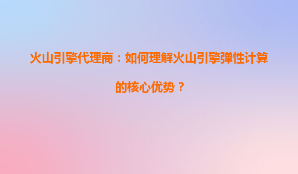 火山引擎代理商:如何理解火山引擎彈性計(jì)算的核心優(yōu)勢?