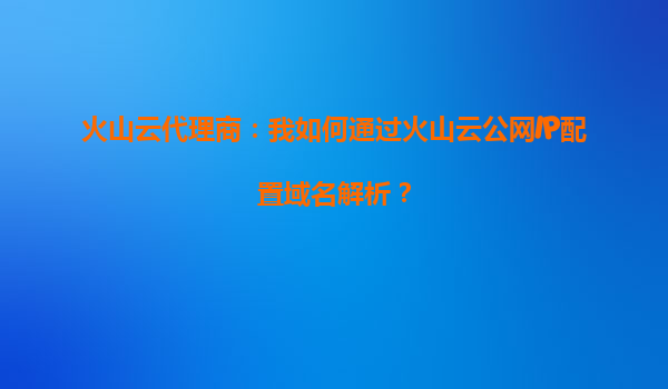 火山云代理商指南:如何通過(guò)火山云公網(wǎng)IP配置域名解析