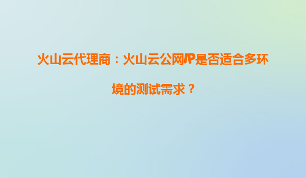 火山云公網(wǎng)IP:多環(huán)境測(cè)試的理想選擇