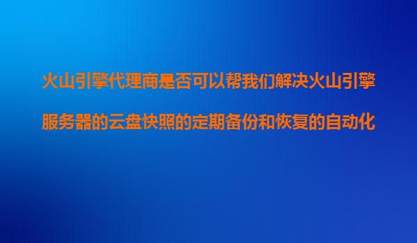 2025-11-08火山引擎代理商如何幫您解決云盤快照的自動化備份與恢復(fù)難題 一、火山引擎云盤快照的核心優(yōu)勢 火山引擎作為字節(jié)跳動旗下的云計算品牌,其云服務(wù)器(ECS)和云盤快照功能具備以下技術(shù)優(yōu)勢: ...