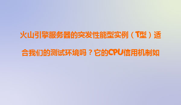 2025-11-08火山引擎突發(fā)性能型實例(T型)在測試環(huán)境中的適用性及CPU信用機制解析 一、突發(fā)性能型實例(T型)簡介 突發(fā)性能型實例(T型)是火山引擎(VolcanoEngine)推出的一種經(jīng)濟高效的云服務(wù)器類型,特別適合對...