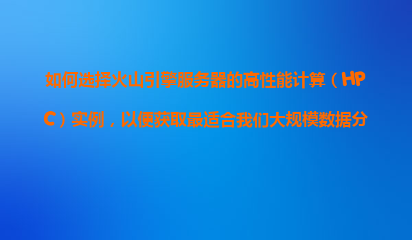 2025-11-08如何選擇火山引擎服務(wù)器的高性能計算(HPC)實例,以便獲取最適合我們大規(guī)模數(shù)據(jù)分析的算力支持? 引言 在當(dāng)今的數(shù)字化時代,大規(guī)模數(shù)據(jù)分析已成為企業(yè)決策和業(yè)務(wù)發(fā)展的關(guān)鍵驅(qū)動力。為了高效處理海量數(shù)據(jù),...