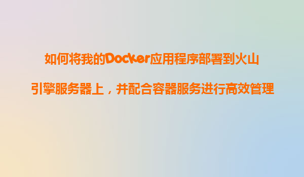 2025-11-08如何將Docker應(yīng)用程序部署到火山引擎服務(wù)器?——容器服務(wù)高效管理指南 前言 在云原生時代,Docker已成為應(yīng)用開發(fā)和部署的標(biāo)配工具。本文將詳細(xì)介紹如何將您的Docker應(yīng)用程序部署到火山引擎云服...