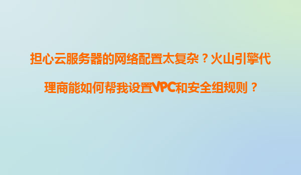 2025-11-05擔(dān)心云服務(wù)器的網(wǎng)絡(luò)配置太復(fù)雜?火山引擎代理商如何幫您設(shè)置VPC和安全組規(guī)則 一、云服務(wù)器網(wǎng)絡(luò)配置的挑戰(zhàn) 對(duì)于許多企業(yè)而言,云服務(wù)器的網(wǎng)絡(luò)配置是一項(xiàng)復(fù)雜且充滿挑戰(zhàn)的任務(wù)。尤其是虛擬...