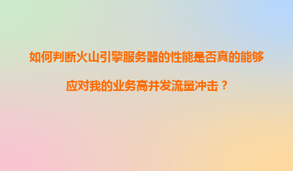 2025-11-06如何評(píng)估火山引擎服務(wù)器是否能應(yīng)對(duì)高并發(fā)流量沖擊 理解業(yè)務(wù)需求與并發(fā)場景特征 在評(píng)估火山引擎服務(wù)器性能前,需明確業(yè)務(wù)特征:包括預(yù)估峰值QPS、平均響應(yīng)時(shí)間要求、會(huì)話保持時(shí)長等關(guān)鍵指標(biāo)。典型高并...