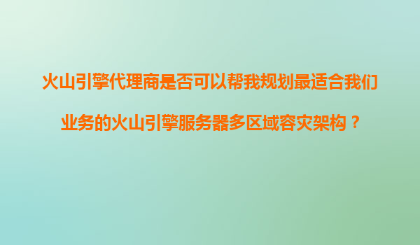 2025-11-06火山引擎代理商如何幫助企業(yè)規(guī)劃多區(qū)域容災(zāi)架構(gòu)? 一、企業(yè)業(yè)務(wù)連續(xù)性面臨的挑戰(zhàn) 在數(shù)字化時(shí)代,企業(yè)業(yè)務(wù)對(duì)IT基礎(chǔ)設(shè)施的依賴程度越來越高。任何服務(wù)器宕機(jī)、網(wǎng)絡(luò)中斷或自然災(zāi)害都可能導(dǎo)致業(yè)...