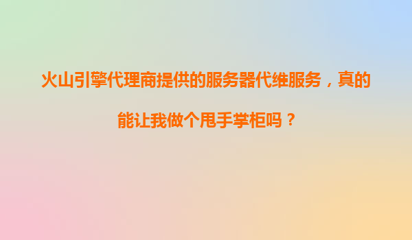 2025-11-05火山引擎代理商提供的服務(wù)器代維服務(wù),真的能讓我做個(gè)甩手掌柜嗎? 引言:數(shù)字化轉(zhuǎn)型中的服務(wù)器運(yùn)維挑戰(zhàn) 在數(shù)字化浪潮下,企業(yè)IT基礎(chǔ)設(shè)施的運(yùn)維壓力與日俱增。服務(wù)器作為業(yè)務(wù)運(yùn)行的核心...