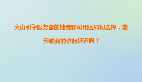 4008-020-360 火山引擎服務(wù)器的地域和可用區(qū)如何選擇,能影響我的訪問(wèn)延遲嗎? 1.引言:地域和可用區(qū)的重要性 在選擇云計(jì)算服務(wù)時(shí),服務(wù)器的地域(Region)和可用區(qū)(AvailabilityZone,AZ)是影響性能、延遲和高...