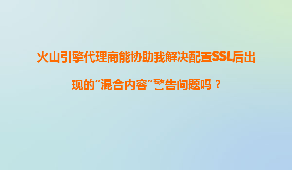 2025-11-04火山引擎代理商如何協(xié)助解決SSL配置后的“混合內(nèi)容”警告問題? 一、什么是“混合內(nèi)容”警告? “混合內(nèi)容”警告通常出現(xiàn)在網(wǎng)站啟用HTTPS后,但頁面中仍存在通過HTTP協(xié)議加載的資源(如圖片、腳本、樣式表等)...