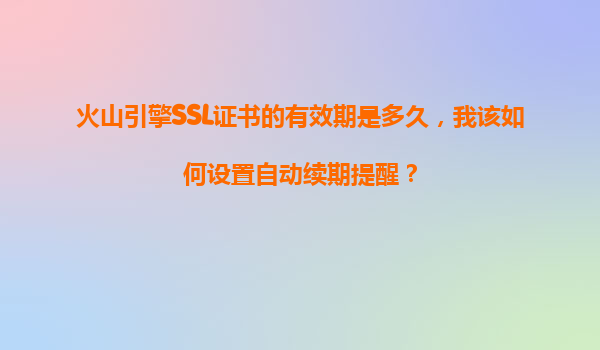 2025-11-04火山引擎SSL證書有效期及自動續(xù)期提醒設(shè)置指南 一、火山引擎SSL證書的默認(rèn)有效期 根據(jù)行業(yè)標(biāo)準(zhǔn)和CA機(jī)構(gòu)規(guī)范,火山引擎提供的SSL證書默認(rèn)有效期為12個月(1年)。如DigiCert、GlobalS...