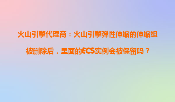 2025-11-01火山引擎代理商:火山引擎彈性伸縮的伸縮組被刪除后,里面的ECS實例會被保留嗎? 彈性伸縮組刪除后ECS實例的歸屬問題 當用戶通過火山引擎或其代理商操作刪除彈性伸縮組(AutoScalingGroup...