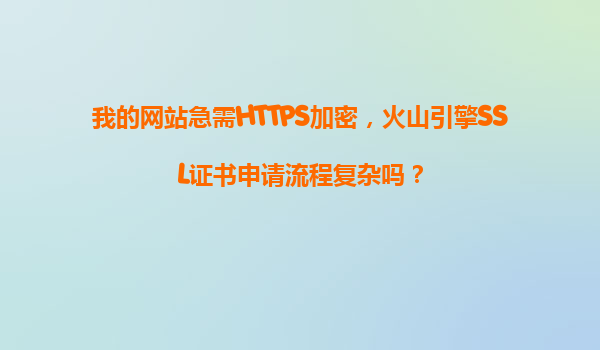 2025-11-03我的網站急需HTTPS加密,火山引擎SSL證書申請流程復雜嗎? 隨著網絡安全意識的提升,HTTPS加密已成為網站運營的基本要求。對于急需為網站部署HTTPS的用戶來說,選擇一個高效、便捷的SSL證書服務至關重要。...