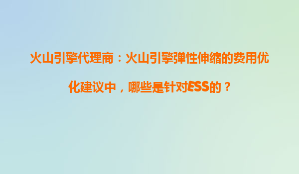 2025-11-01火山引擎彈性伸縮(ESS)費用優(yōu)化核心建議 火山引擎彈性伸縮服務(ESS)作為云計算資源管理的核心組件,其智能化擴縮容能力與成本控制功能深受企業(yè)青睞。針對ESS的費用優(yōu)化,代理商通常會結合火山引擎的技術特性給...